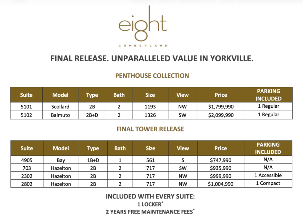 안녕하세요, Mike Yoon입니다. 토론토에서 가장 선망받는 지역인 요크빌(Yorkville)의 중심, 8 Cumberland 빌더가 마지막 남은 유닛들을 정리하기 위해 파격적인 가격과 전례 없는 인센티브를 내놓았습니다.